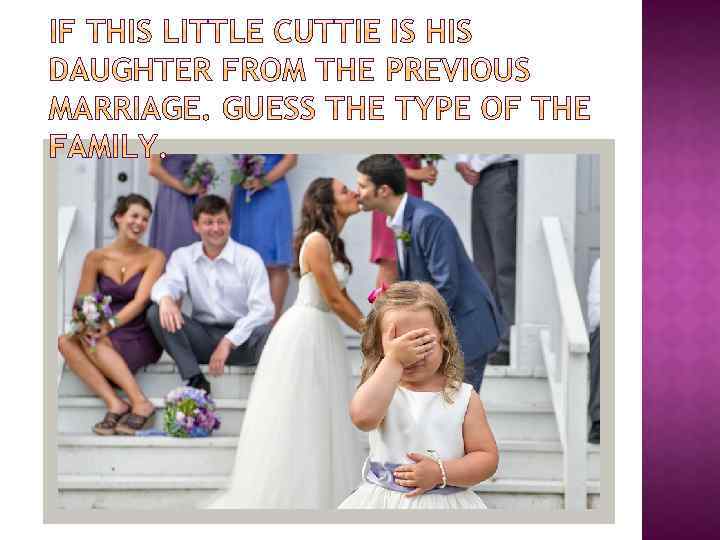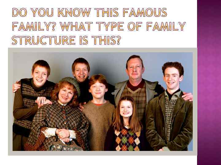 Over half of all marriages end in divorce, and many of these individuals choose to get remarried. This creates the stepfamily, which involves two separate families merging into one new unit. It consists of a new husband wife and their children from previous marriages or relationships. Stepfamilies are about as common as the nuclear family, although they tend to have more problems.