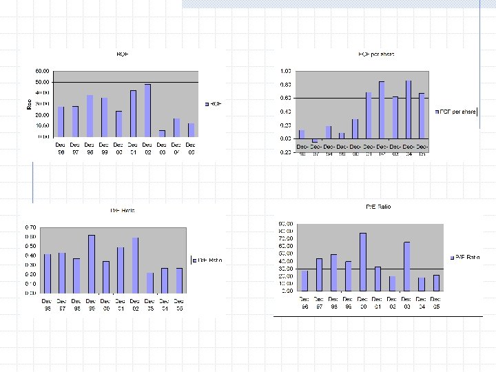 The Fisher Approach Functional Factor n Superior R&D n Leader in 6 therapeutical areas People Factor n Educated and experienced management Essential Investment Characteristic n Strong competitive position n Prospective cost-saving movements The Price of the stock n 12. 6 % below 52 week high and 28 % above 52 week low n High P/E ratio