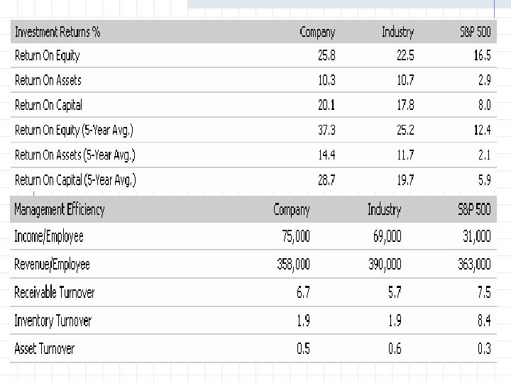 Financial Ratios - Investment Returns (in%) ROE SNY Industry 14% ROA 6. 9 % -0. 7 % ROC 12. 1 % -1. 2 % β = 0. 75