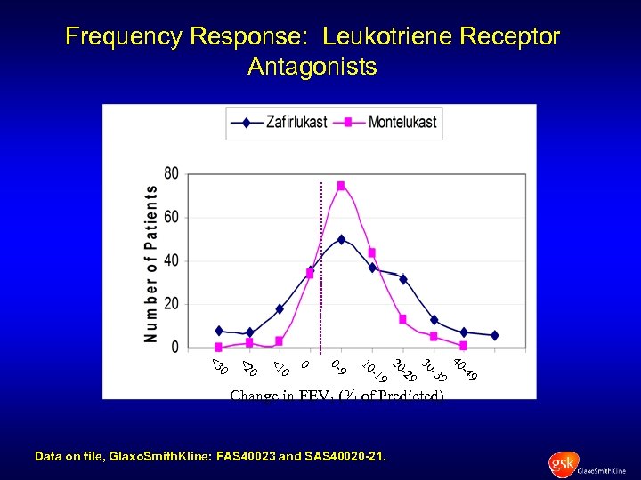 Frequency Response: Leukotriene Receptor Antagonists 9 -4 40 9 -3 30 9 -2 20 9 -1 10 9 0 - 0 0 <1 0 <2 0 <3 Change in FEV 1 (% of Predicted) Data on file, Glaxo. Smith. Kline: FAS 40023 and SAS 40020 -21.