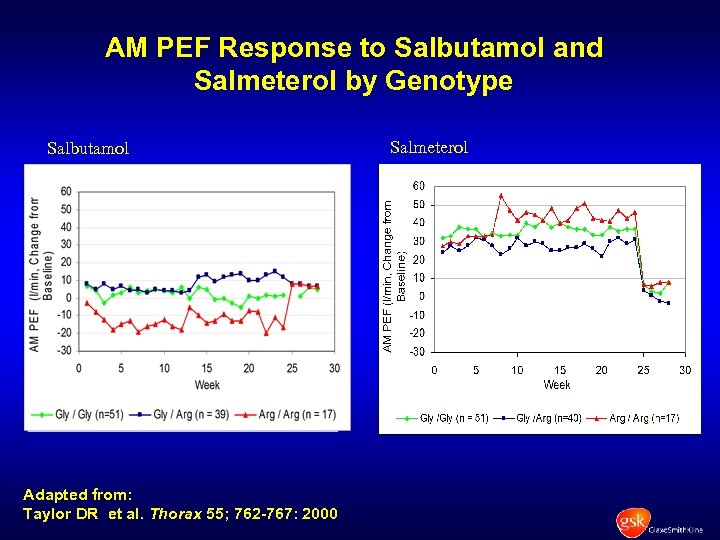 AM PEF Response to Salbutamol and Salmeterol by Genotype Salbutamol Adapted from: Taylor DR et al. Thorax 55; 762 -767: 2000 Salmeterol