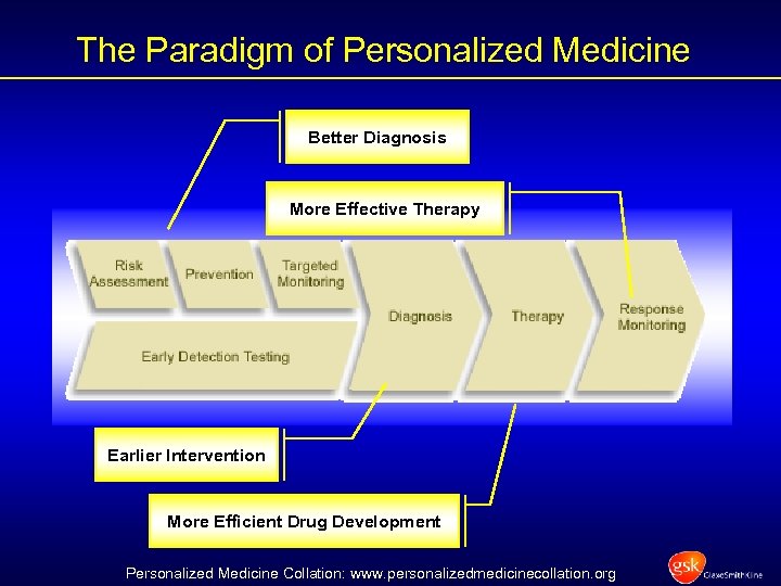 The Paradigm of Personalized Medicine Better Diagnosis More Effective Therapy Earlier Intervention More Efficient Drug Development Personalized Medicine Collation: www. personalizedmedicinecollation. org