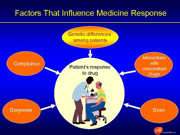 Factors That Influence Medicine Response Genetic differences among patients Compliance Diagnosis Patient’s response to drug Interactions with concomitant drugs Dose