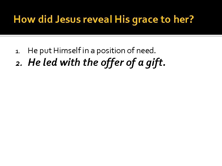 How did Jesus reveal His grace to her? 1. 2. He put Himself in a position of need. He led with the offer of a gift.