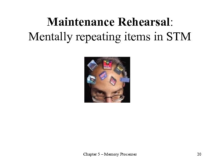 Maintenance Rehearsal: Mentally repeating items in STM Chapter 5 – Memory Processes 20