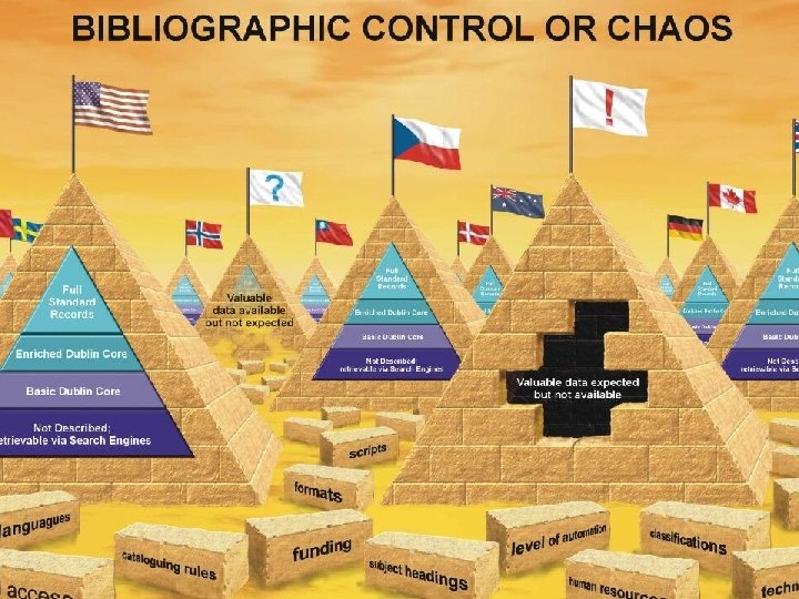 Conclusion • • • Integration of heterogeneous resources is not a luxury; it should be a standard service of modern libraries if they want to be successful in the information market—which is now worldwide. Integration of heterogeneous resources is very much connected with subject gateways and bibliographic control in general. It is easy to integrate everything which is under control, but it is not feasible to integrate chaos. When we start to integrate, we are often in a similar situation to the conquerors of the Egyptian pyramids. Some obstacles not allowing us to get to the expected content are the same as thousands of years ago; namely, misleading navigation to places where one expects something valuable, but only an empty pyramid is found, and, on the other hand, very well hidden pyramids, containing treasures. Also there are different languages and scripts, the necessity of knowing a “password“, etc. Some obstacles are typical of the 21 st century (different formats, different cataloguing rules, different metadata, different classifications and subject headings, different technical standards, lack of financial and human resources wasted for overcoming all these differences) ->