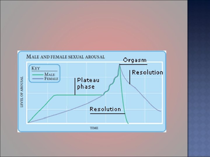 The male and female sexual functions cycle consists of excitement, plateau, orgasm, and resolution. the body responds with an increase in heart rate, blood pressure and respiration