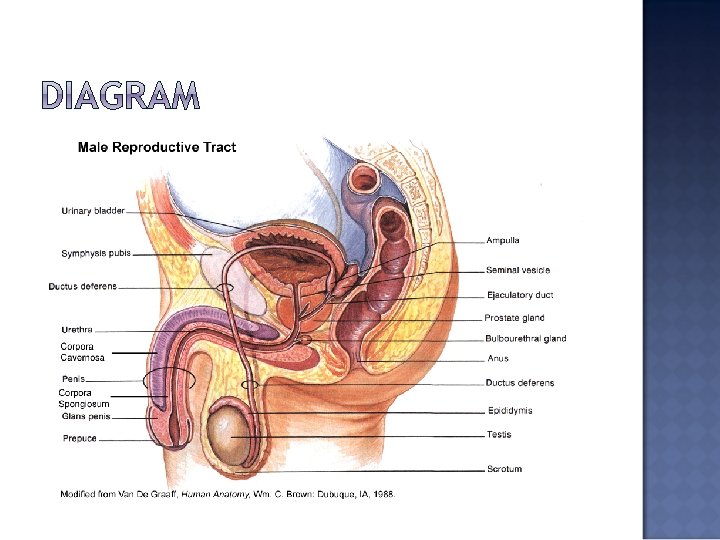 • • • From the testis, the spermatozoa enter the epididymis, an elongate tubules with head, body, and tail regions. The epididymis monitors and adjusts the composition of the fluid in the seminiferous tubules. Serves as a recycling center for damaged spermatozoa, stores and protects spermatozoa, and facilitates their functional maturation. The ductus deferens, or vas deferens, begins at the epididymis and passes through the inguinal canal as part of the spermatic cord. Near the prostate gland the ductus deferens enlarges to ampulla. The junction of the base of the seminal vesicle and the ampulla creates the ejaculatory duct, which empties into the urethra. The urethra extends from the urinary bladder to tip of the penis. The urethra can be divided into prostatic , membranous, and spongy regions.