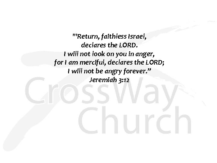 "'Return, faithless Israel, declares the LORD. I will not look on you in anger, for I am merciful, declares the LORD; I will not be angry forever. ” Jeremiah 3: 12