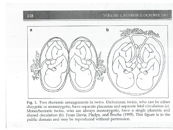 Do MZ vs. DZ twins tell the whole story? • If MZ twins are reared apart, does that mean that all similarities are due to genetics? (this is assumed) – e. g. , DZ twin with schizophrenia – 17 -24% incidence MZ twin has a 48% incidence • Similarities due to the fact that each person engenders similar responses from the environment (Phelps et al, ‘ 97) • Monochorionic (MC) MZ twins – have a single placenta and circulation system (about one third of cases) • Dichorionic (DC) MZ twins - have two separate single placenta and circulation systems • Consider the in utero environment (shared = MC) – MZ twins – 48% when MZ is MC (drops to 28% when DC) • More is due to environment than we thought