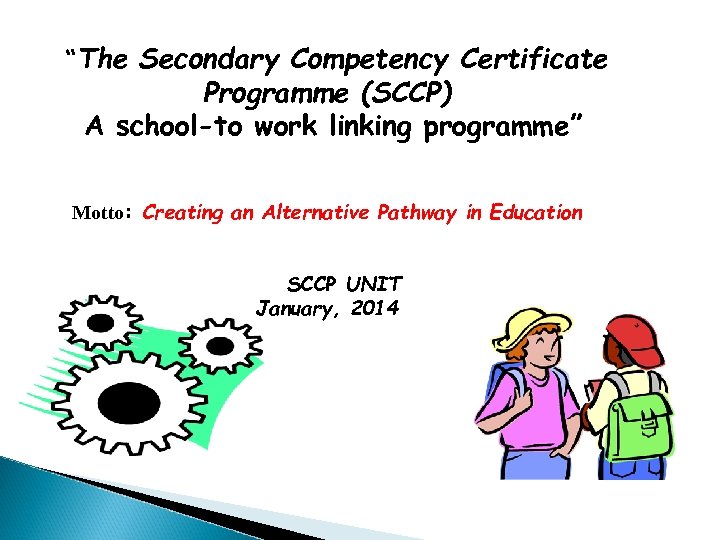 “The Secondary Competency Certificate Programme (SCCP) A school-to work linking programme” Motto: Creating an Alternative Pathway in Education SCCP UNIT January, 2014