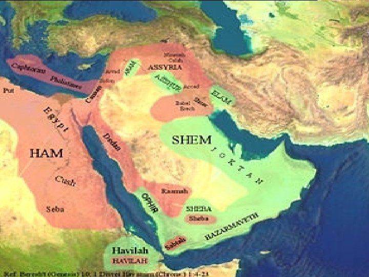 The Sons of Shem Gen 10: 21 -29 And children were born also to Shem, the father of all the children of Eber, the brother of Japheth the elder. 22 The sons of Shem were Elam, Asshur, Arphaxad, Lud, and Aram. 23 The sons of Aram were Uz, Hul, Gether, and Mash. 24 Arphaxad begot Salah, and Salah begot Eber. 25 To Eber were born two sons: the name of one was Peleg, for in his days the earth was divided; and his brother's name was Joktan. 26 Joktan begot Almodad, Sheleph, Hazarmaveth, Jerah, 27 Hadoram, Uzal, Diklah, 28 Obal, Abimael, Sheba, 29 Ophir, Havilah, and Jobab. All these were the sons of Joktan.