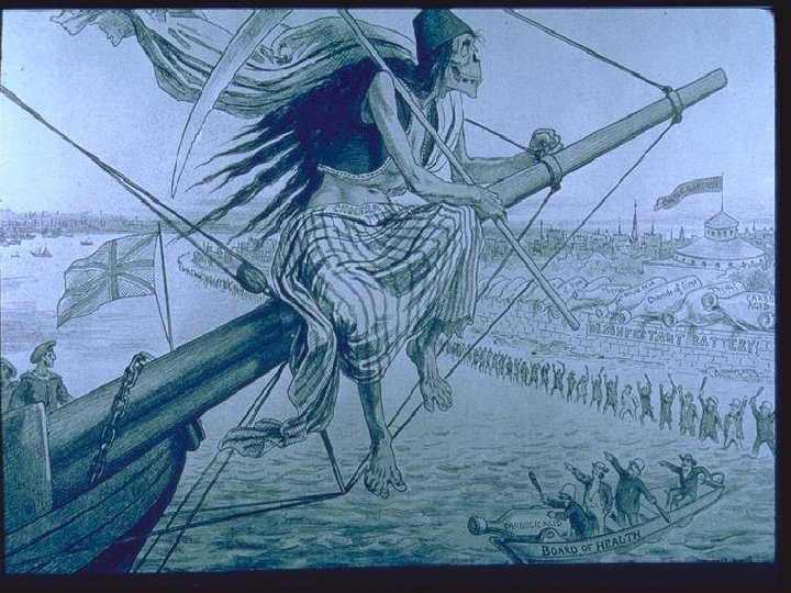 Notes about this image: Cholera: "The Kind of 'Assisted Emigrant' We Cannot Afford to Admit. " 1883. Citation: F. Graetz cartoon. Puck Magazine. In Mary and Gordon Campbell, The Pen, Not the Sword, Aurora Publishers, Inc. , Nashville, Tennessee, 1970. 8. 12. 5