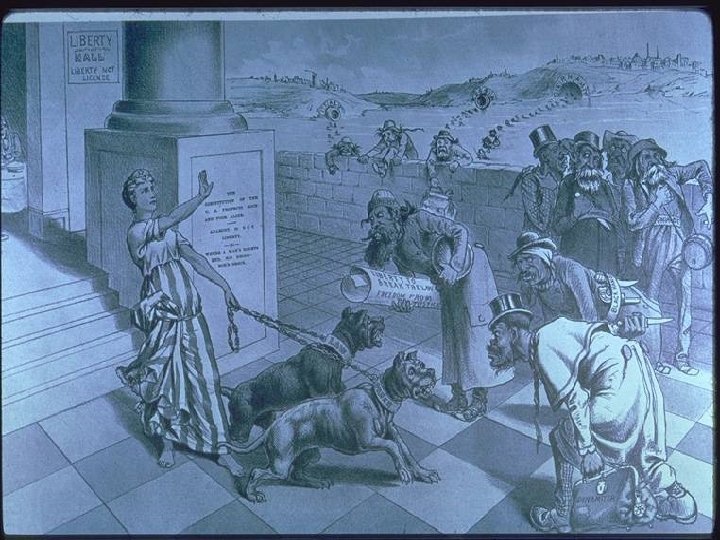 Isolationism in politics and immigration policies in the US • The Americans were very serious about their “isolationist” ideals. The were expressed in both tariffs on foreign goods and massive quotas on immigration • In 1922 the Fordney-Mc. Cumber tariff and in 1930, the Hawley. Smoot tariff, effectively closed the US market to European countries • In 1924, the American government established an annual immigration quota limit of 2 percent of the nationals of a given country that had been resident in the United States in 1890. • This restriction sharply limited the flow of Catholics, Jews, and Asians, most of whom had come after 1890, even as it encouraged greater numbers of British, Germans, and Scandinavians, whose numbers had been greatest before 1890. • These restrictions were based largely on race and were deeply offensive to the peoples of the countries that found they bore the brunt of the discrimination. Cartoons of the time paint a picture.
