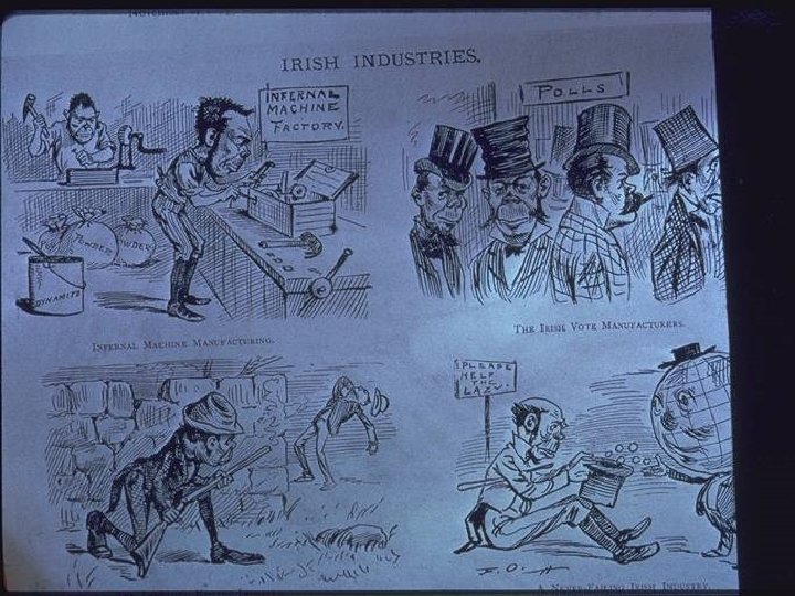Notes about this image: These cartoons represented widely-held views of the activities of most Irish. Americans as corrupt, anarchistic, murdering, lazy beggars. 1881. Citation: F. B. Opper cartoon. Puck, Nov. 2, 1881. Library of Congress Prints and Photographs Division, Washington, DC 20540. LCUSZ 62 -118124. In Wayne Moquin, ed. , Makers of America, Vol. 4, William Benton, Publisher, 1971, p. 184. 8. 12. 5