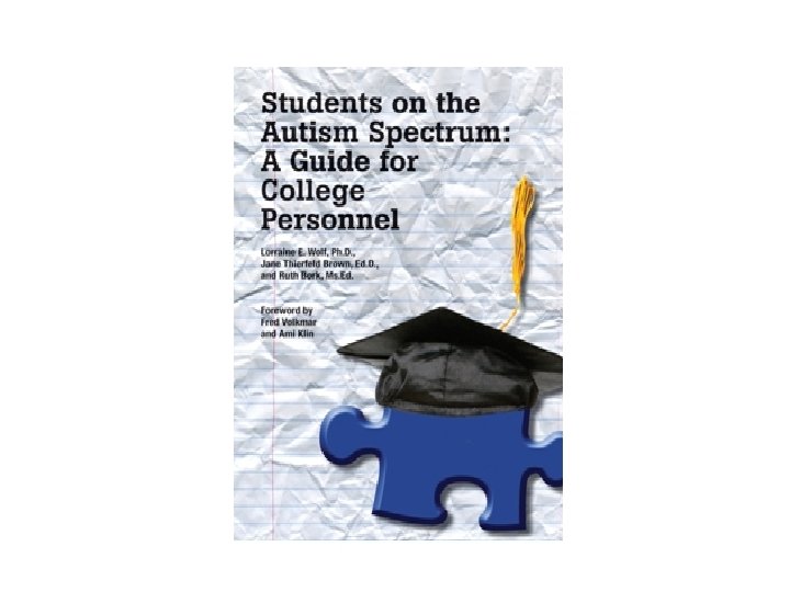 I… • Could have written the textbook • Don’t turn in my homework • Jump out of my chair to correct my professors • Can’t speak when called on in class • Want you to get to know me Wolf, Thierfeld Brown, King, Bork, 2012 College. Autism. Spectrum. com Do Not Reproduce