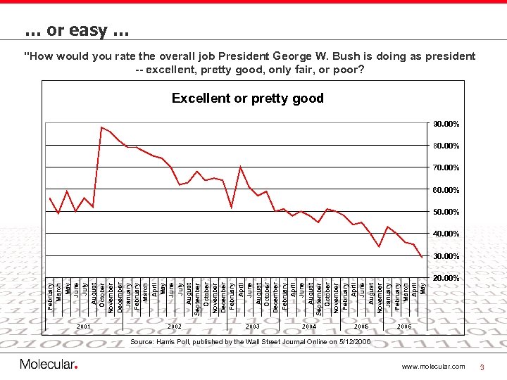 … or easy … "How would you rate the overall job President George W. Bush is doing as president -- excellent, pretty good, only fair, or poor? Excellent or pretty good 90. 00% 80. 00% 70. 00% 60. 00% 50. 00% 40. 00% 30. 00% February March May June July August October November December January February March April May June July August September October November December February April June August October December February April June August September October November February April June August November January February March April May 20. 00% 2001 2002 2003 2004 2005 2006 Source: Harris Poll, published by the Wall Street Journal Online on 5/12/2006 www. molecular. com 3