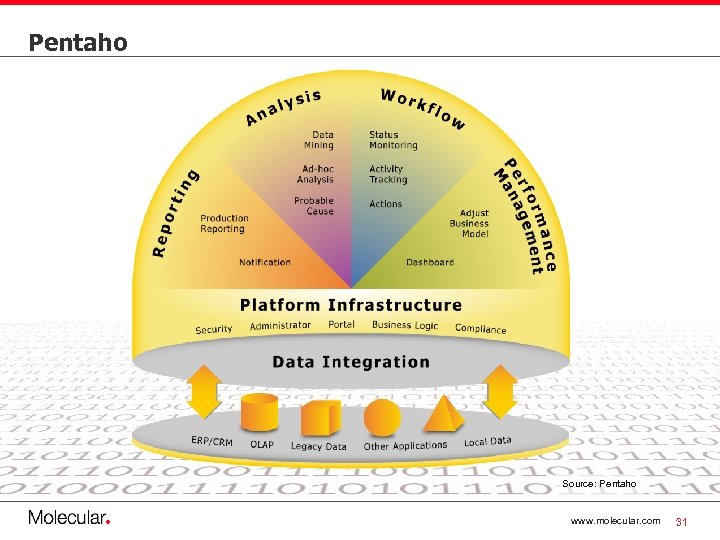 Open Source BI Suites • • • BEE Bizgres Openi Pentaho Spago. BI www. molecular. com 29