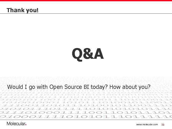 Thank you! Q&A Would I go with Open Source BI today? How about you? www. molecular. com 39