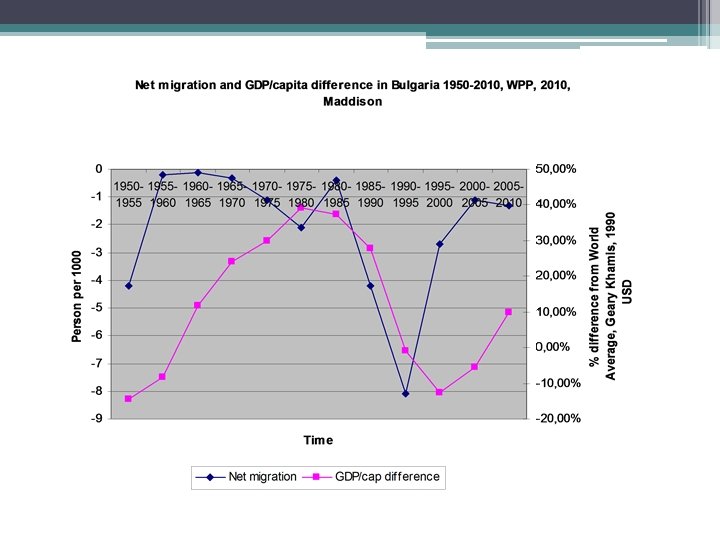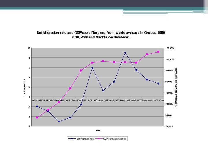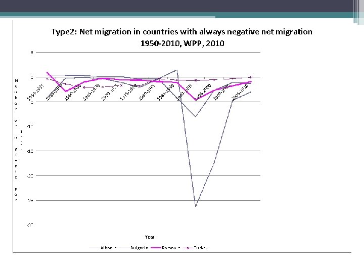 Global statistics: net migration flows 1. United nations: world population prospects, net migration rates, global scope 2. Net migration residuals. Net migration: the number of immigrants minus the number of emigrants over a period, divided by the personyears lived by the population of the receiving country over that period. It is expressed as the net number of migrants per 1, 000 people. For most countries the figure is based on estimates of net international migration derived as the difference between overall population change and natural increase. . 3. Problems of enumeration, not a real category. Net flows. 4. Longer term development in a comparative way. Regional analysis • Census problems: not there but counted in the census (Romania) • If controlled by other historical estimates that Hungary seems to be zero or negative since 2008