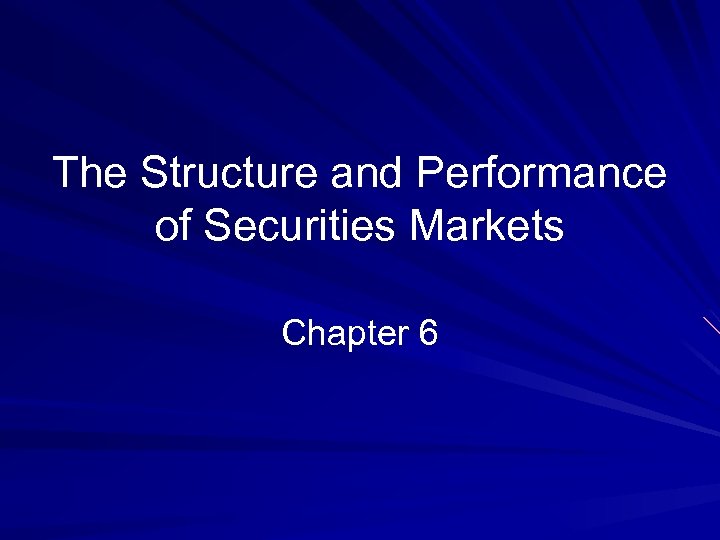 The Structure and Performance of Securities Markets Chapter 6