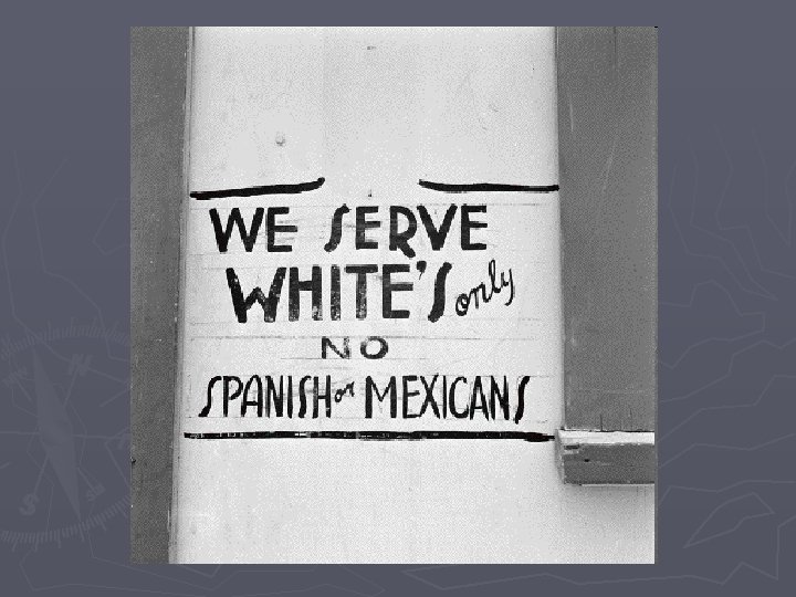 What is segregation? ► Segregation is the separation of people according to race or ethnicity. ► Segregation can be about separating African -Americans from Whites, or about separating Hispanics from Whites. ► Before 1950 segregation was common and normal in the U. S. A. Segregation deprived minorities of their rights.