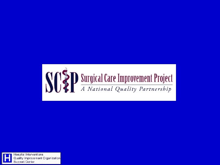 SCIP Steering Committee • • • American College of Surgeons American Hospital Association American Society of Anesthesiologists Association of peri. Operative Registered Nurses Agency for Healthcare Research and Quality • • • Centers for Medicare & Medicaid Services Centers for Disease Control and Prevention Department of Veteran’s Affairs Institute for Healthcare Improvement Joint Commission on Accreditation of Healthcare Organizations