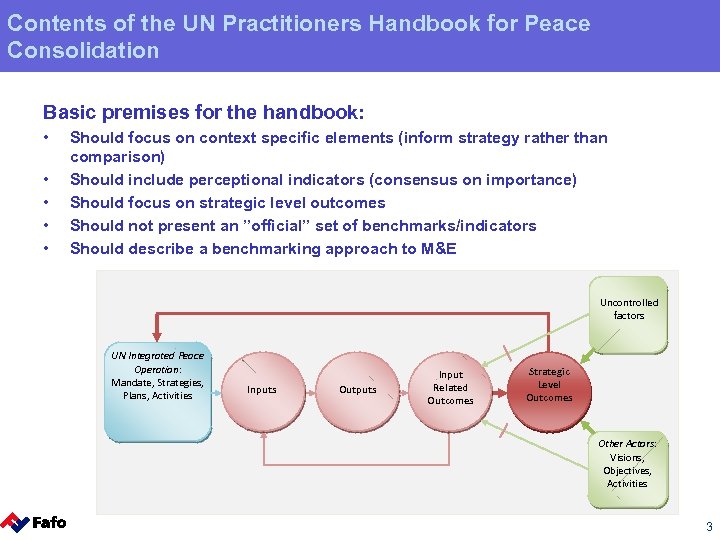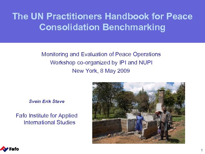 The UN Practitioners Handbook for Peace Consolidation Benchmarking Monitoring and Evaluation of Peace Operations Workshop co-organized by IPI and NUPI New York, 8 May 2009 Svein Erik Stave Fafo Institute for Applied International Studies 1