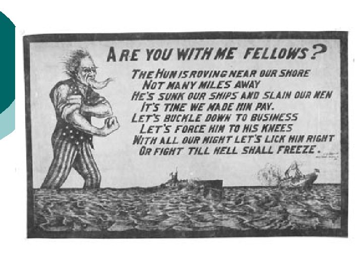 Continued… ¡ ¡ ¡ Many Americans doubted the ties between their security or interests and what they believed were the rivalries, treaties, agreements between European powers 75, 000 Americans volunteered within the first three months after declaration Sen. Thomas Hardwick (GA): “There was undoubtedly general, widespread opposition on the part of most people…to the enactment of the draft law. Numerous, largely attended mass meetings held in every part of the U. S. protested against it. ”