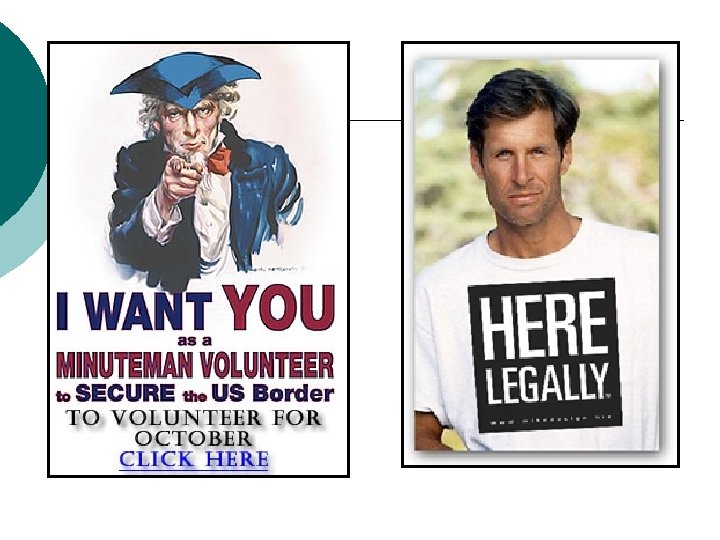 Anti-Immigrant Propaganda ¡ ¡ ¡ ¡ Anti-radical sentiments merged with Anti-immigrant beliefs Distortion of political views Manufacture a threat, increase fear, focus that fear on a particular group Blame problems on immigrants Associate patriotism and Americanism with opposition to immigrants Oppression masked in national security Invasion, end of civilization