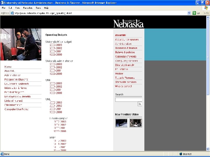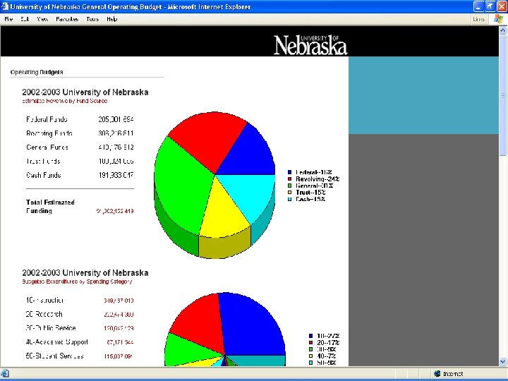 General Operating Budget Web Sites Address: http: //www. nebraska. edu/about/budget_operating. shtml Contents: n n n Public Access to Official Published General Operating Budget Last 4 Fiscal Years listed on site Also have a private site during budget development cycle