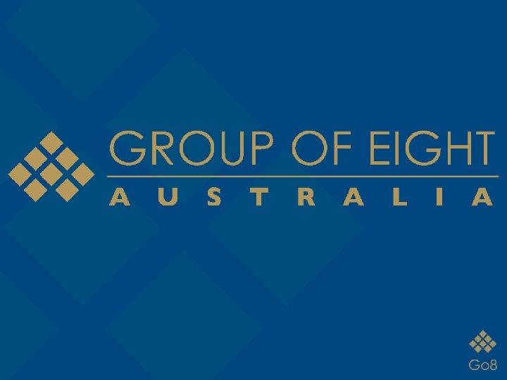 The role of the Go 8 • The Go 8 Board consists of the vice-chancellors (presidents) of its eight member universities. The Board meets five times a year. • Go 8 collaboration is strengthened by an extensive network of committees of both academic and administrative staff which meet regularly for benchmarking, policy development and joint project work including: – Deputy Vice-Chancellors Research – Academic Policy Committee – Deans of Graduate Studies – Deans of Engineering – Deans of Medicine – Directors International – Directors Research – Directors Human Resources – Directors of Planning and Statistics