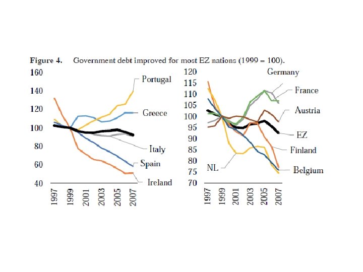 What happened? There is a consuensus view now (although in my opinion some economists like DE Grauwe create confusion) • Spain, Ireland, Greece: Frenkel’s cycle (or This time is different or An unfortunate sequence of events…) • Portugal: it had it earlier • Italy (and France): slow erosion of competitiveness • Outside the EMU the Baltic countries, Hungary and perhaps others that pegged their currency to the Euro had their unfortunate sequence of events