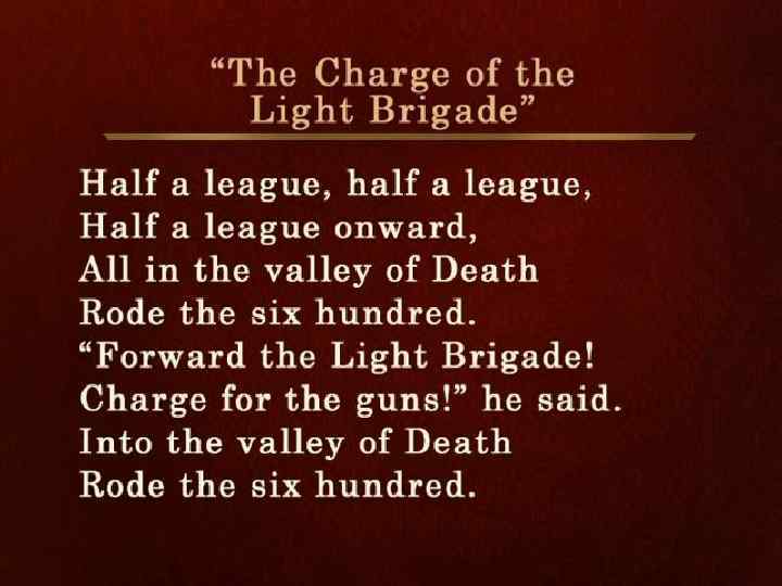 n n n became Poet Laureate (after the death of Wordsworth in 1850) 'The Charge of the Light Brigade, (1854) Maud (1855) cycle Idylls of the King – deals with Arthurian legends technical mastery of descriptive verse – considered unequalled: “the finest ear of any English poet since Milton” (T. S. Eliot)