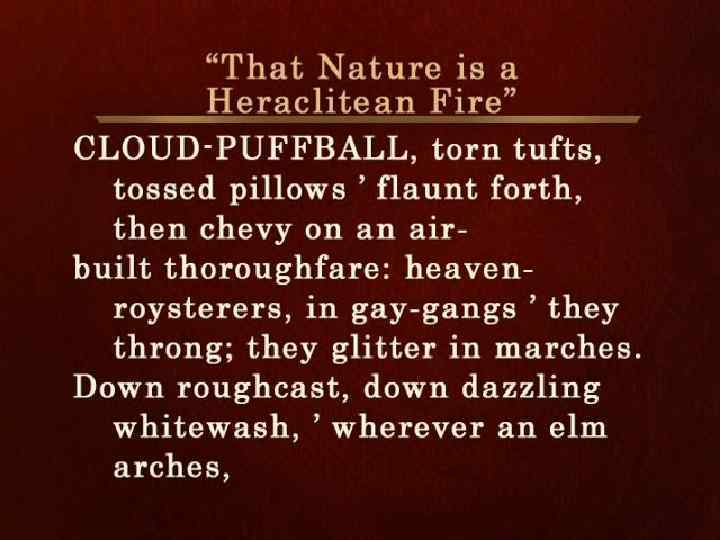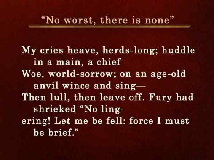 sought to create poetry around stress, what he called “sprung rhythm, ” not meter & freed English poetry from the chains of the pentameter n more closely mimics the sounds of actual English speech n n Sprung rhythm is a type of 'accentual verse, ' which means that you only pay attention to the number of accents in a line, instead of paying attention to the accents and the numbers of syllables Baa black sheep Have you any wool? Yes sir, yes sir Three bags full.