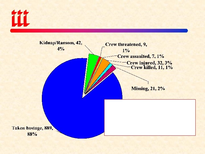 A total of 111 incidents were reported for Somalia and the Gulf of Aden in 2008, up nearly 200 percent on 2007. A total of 42 vessels were hijacked by Somali pirates and 815 crew taken hostage.