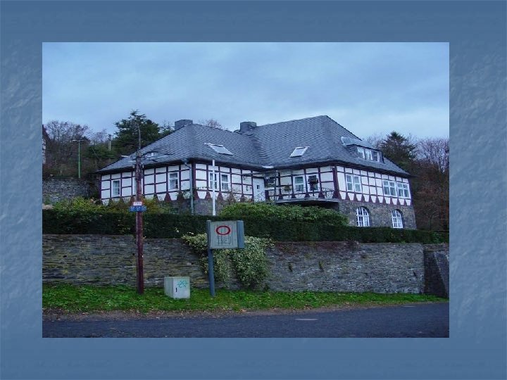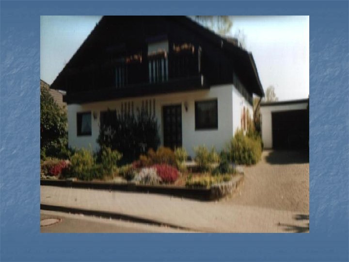 Wie sehen typische deutsche Häuser aus? 1 3 2 Arbeitet in Gruppen! 1. Das ist ein……. . 2. Es ist…. (Wie? ) 3. Vor dem Haus ist(sind)… 4. Hier wohnt (wohnen)…… 5. Im Haus sind viele Zimmer: ……… 6. Mir gefällt das Haus, denn es ist……… n 4