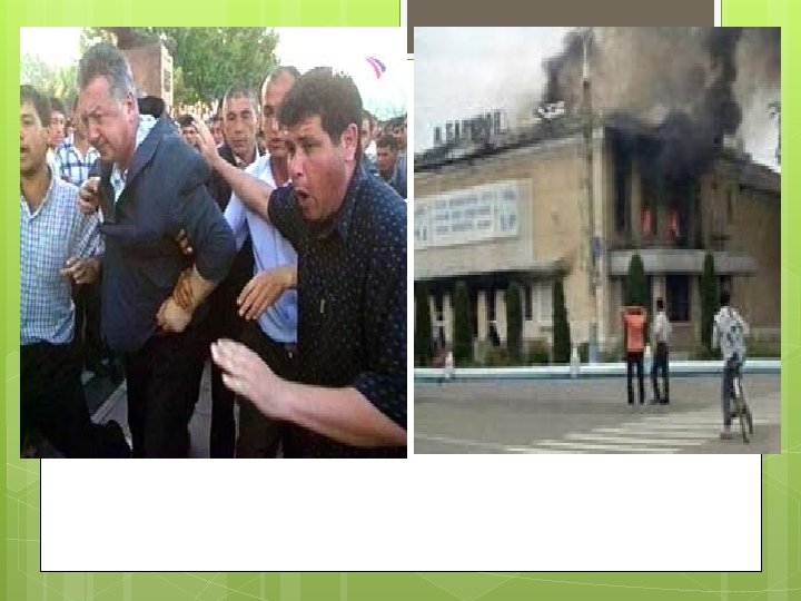 Political extremism manifested in anarchy. For example, after the collapse of the USSR on the territory of the former Soviet republics such as Georgia, Azerbaijan, Moldova, and a number of other political extremism is widespread. As elements of political extremism particularly clearly manifested in the events in Uzbekistan - in Ferghana (1989), Andijan (2005), and in Osh events in Kyrgyzstan