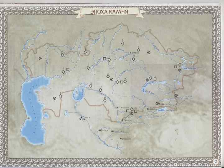 The brief content of the lecture I. Paleolithic: - Ancient Paleolithic: Doshell – 2, 5 mln. -800 th. B. C. , Shell, Ashell - 800 -140 th. B. C. - Middle Paleolithic: Upper Ashell - Mousterian period – 140 -40 th. B. C. 3. Upper Paleolithic 40 -10 th. B. C. II. Mesolithic XII-V th. B. C. III. Neolithic V-II th. B. C. The first men on the territory of Kazakhstan appeared about 700 -500 th. years ago during The Paleolithic Age: near rivers Isym, Chu, Betpak-Dala. The more numerous sites of the late times were Shabakty, Temirkazgan, Borykazgan etc. During the Mousterian epoch the method of production of stone instruments developed. Among the Mousterian sites discovered in the Karatau, one was situated in Karasai, on the right bank of the Arystandy river. The finds of the Mousterian instruments are known in the middle flow of the Sarysu river in Central Kazakhstan and Priirtyshie. Neolithic. The Neolithic hunters, fishermen and collectors lived in Pri-Ural and Irtysh. The natural environment of that time was almost the same as in our days. The technology of working up of stone in the epoch of Neolithic achieved the highest level, people learned how to saw and polish the stone and make the mini stone-blades (micro-lit). The durable crockery ceramics were made with help of baking by Neolithic people. In the epoch of Upper Neolithic and Eneolithic one more important event was happened in the life of people. The animals have been domesticated and became domestic animals. People began to be occupied with farming. The appearance of the beginnings of mining, mastery of metals, soft-ones – copper, gold, lead took place.