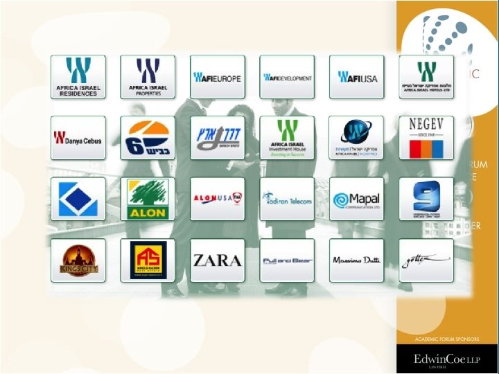Valuation for the Plan • AFI going-concern value for the purpose of the arrangement: 2 billion NIS (or 36. 1268 NIS per share). – AFI and the bondholders’ committee consented to this valuation; – The bondholders consented to Lebayev retaining the controlling position at AFI. • His personal contacts in Russia and Eastern Europe were considered a major component to the conglomerate’s value.
