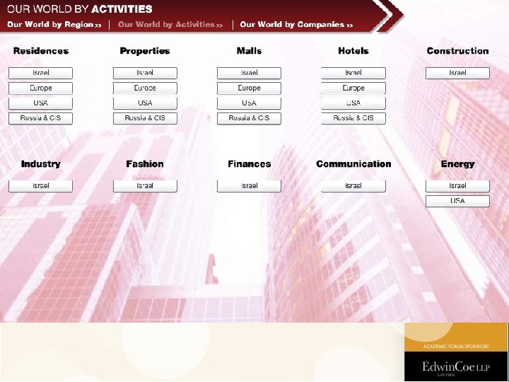 Foundations of the Plan • The going-concern value of the AFI group is related to the controlling position of Mr. Lebayev. – Enjoys personal connections in Russia and other Eastern Europe countries, that enhance the business development there. • Realization of property as of the end of 2009 would generate low recovery for the creditors, given the economic downturn in those real estate markets. – Prior to 2009 Q 2, AFI realized assets and paid off approx. 3. 3 billion NIS.