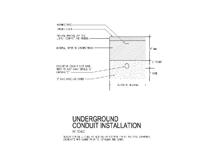 • One of the 4” conduits shall contain a conductive Maxcell sleeve from the Mesa Lab building down to the hand-hole closest to the pump house. All other conduits shall contain a pull string.