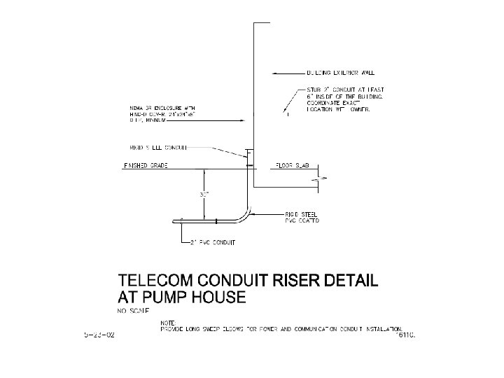 • The 2” conduit into the pump house will be used to provide, – Phone access – Network connectivity for power monitoring equipment – Future expansion for other services