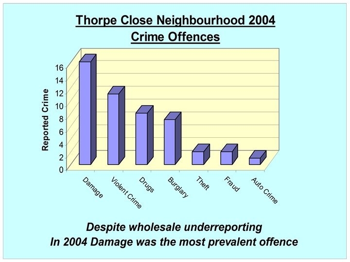 RESIDENT’S QUOTES “The area has now become a drug zone, dealers are coming and going every hour. The flats in the corner of Thorpe Close need to come down” (2 year tenant) “I won’t go out after dark” (5 year tenant)