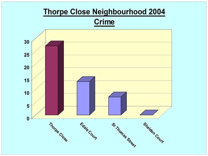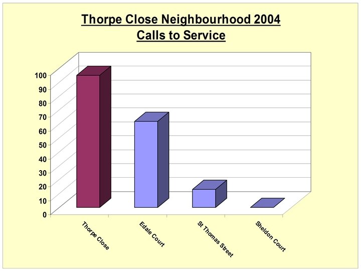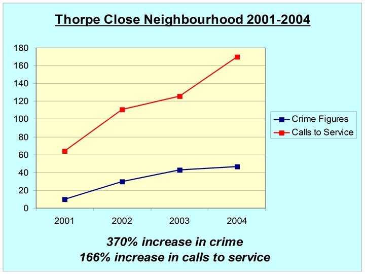 Friday 28 th November 2003 A Typical Day in the Area TO D • 10 am • Approximately 15 known drug users seen to visit certain addresses, TE R PO RE TS ICE EN OL ID P NC I known for drug dealing, for short periods before leaving again • Local youths seen running to and from an unconnected address where young offenders frequented. One of the youths was on bail at the time for a burglary on Thorpe Close • Vagrant found sleeping on a communal landing in Thorpe House with human faeces nearby • 6. 30 pm • Within a half hour period a different set of known drug users seen visiting the area • A couple staggered through the estate swearing and shouting at each other in a drunken stupor on their way home • Common prostitute arrested outside Thorpe House NO