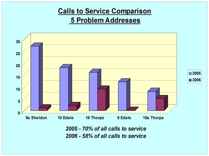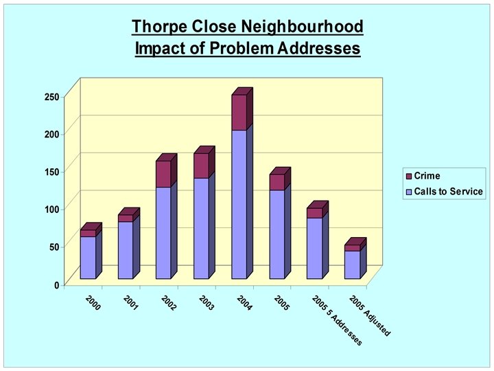 ASSESSMENT – Police Figures to year end 2005 • 55% Reduction in Overall Crime • 47% Damage Reduction • 60% Violent Crime Reduction • 83% Burglary Reduction • 86% Drugs Reduction • 40% Reduction in Calls to Service • Increased Reporting