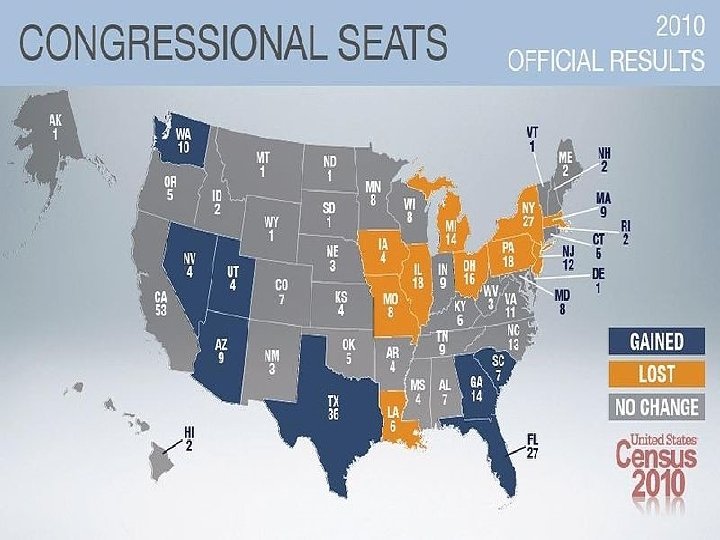 HOUSE AND SENATE • Remember there are 435 members – with the state’s population determining how many members per state. • Every state must have at least one seat – or member. • Every 10 years, the HOR is reapportioned to recalculate how many members per state – never goes above 435 total though.