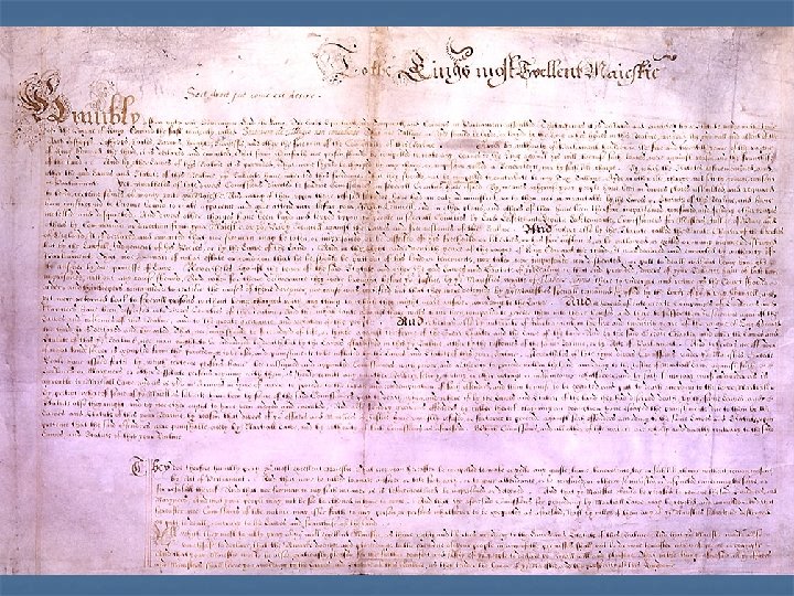 The Petition of Right n n n 1628 Led to English Civil War Created by Parliament (English legislative branch) n n Failure to uphold Magna Carta Use of martial law Taxing without consent of Parliament Arbitrary (w/o reason) imprisonment