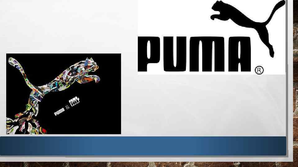 • PUMA SE IS AN INDUSTRIAL COMPANY IN GERMANY SPECIALIZING IN THE PRODUCTION OF SPORTS SHOES, CLOTHING, IMPLEMENTS AND PERFUMES UNDER THE PUMA BRAND. • THE COMPANY WAS FOUNDED IN 1948 BY RUDOLPH DASSLER AFTER HE QUARRELED WITH HIS BROTHER ADOLF, UNDER THE NAME RUDA (FROM RUDOLF DASSLER). LATER, THE COMPANY WAS RENAMED PUMA. UNTIL THE QUARREL THE BROTHERS WERE THE OWNERS OF THE COMPANY PRODUCING SPORTS SHOES GEBRDER DASSLER. AFTER BREAKING THE RELATIONSHIP, ADOLF FOUNDED THE COMPANY ADIDAS.