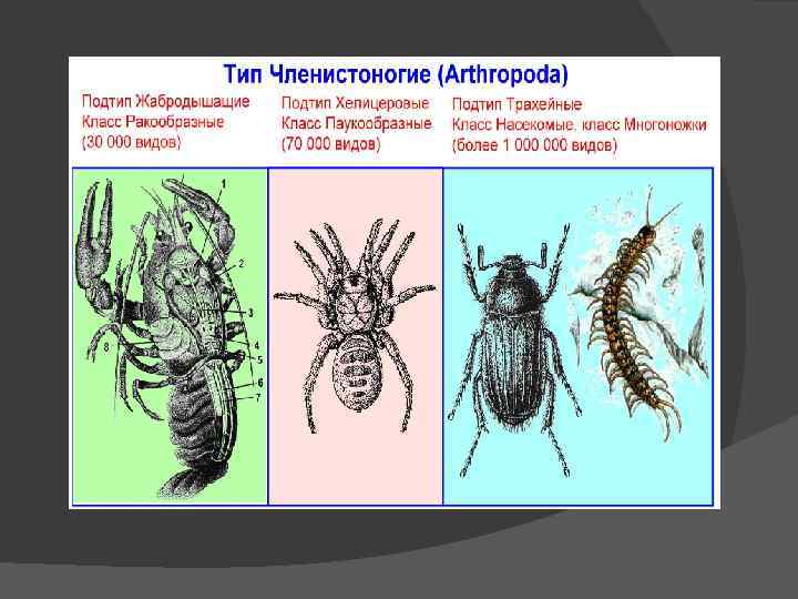 • Тип Членистоногие (Arthropoda) Подтип Жабродышащие (Branchiata) Класс Ракообразные (Crustacea)